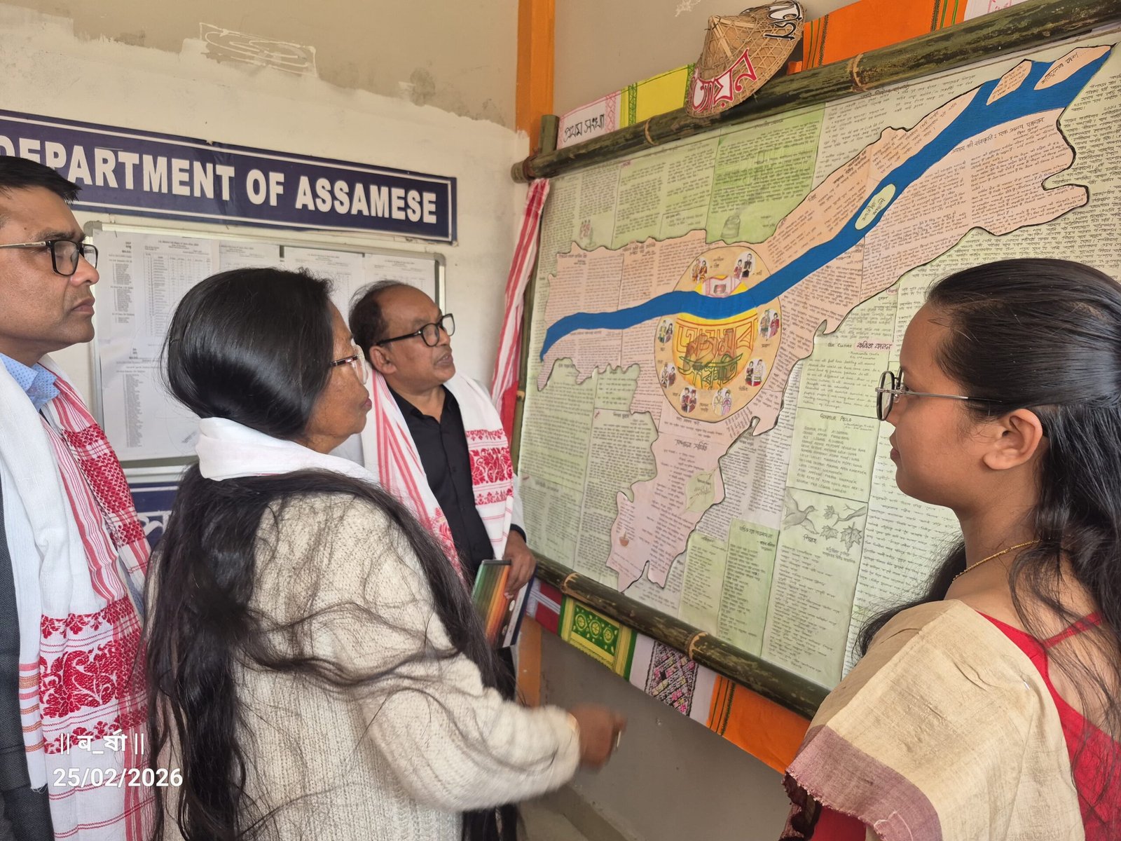 বিকাশ শইকীয়া, মাজুলী: ২৬ ফেব্ৰুৱাৰী: মাজুলী সাংস্কৃতিক বিশ্ববিদ্যালয়ৰ চতুৰ্থ বাৰ্ষিক খেল সপ্তাহৰ আজিৰ বিশেষ দিনটোত বিশ্ববিদ্যালয়ত প্ৰথমবাৰলৈ বিভাগীয় ৰূপে তিনিখনকৈ প্ৰাচীৰ পত্ৰিকা উন্মোচন সম্পন্ন হয়৷ ক্ৰমে অসমীয়া বিভাগৰ প্ৰাচীৰ পত্ৰিকা ‘প্ৰত্যায়ন’ উন্মোচন কৰে মাজুলীৰ সাহিত্যৰ সভাপতি কমল দত্তই, পৰিৱেশ্য কলা বিভাগৰ প্ৰাচীৰ পত্ৰিকা উন্মোচন কৰে অৱসৰী প্ৰধান শিক্ষয়িত্ৰী ৰেনুমালা দত্তই আৰু হেমচন্দ্ৰ উচ্চতৰ মাধ্যমিক বিদ্যালয়ৰ বিষয় শিক্ষক অক্ষয় নাথে বুৰঞ্জী বিভাগৰ প্ৰাচীৰ পত্ৰিকা ‘লোকায়ত’ উন্মোচন কৰে৷ পত্ৰিকাসমূহ উন্মোচনৰ লগতে উন্মোচকসকলে বিচাৰকৰ ভূমিকাও পালন কৰে৷ পাপৰি চুতীয়াৰ সম্পাদিত অসমীয়া বিভাগৰ প্ৰাচীৰ পত্ৰিকা “ প্ৰত্যায়ন“ এ শ্ৰেষ্ঠ প্ৰত্ৰিকাৰ স্থান লাভ কৰাৰ বিপৰীতে মমী বৰুৱাৰ সম্পাদিত বুৰঞ্জী বিভাগৰ “ লোকায়ত“ এ দ্বিতীয় আৰু কস্তুৰী মহন্তৰ সম্পাদিত পৰিৱেশ্য কলা বিভাগৰ“ চিফুং“ এ তৃতীয় স্থান লাভ কৰে৷ অনুষ্ঠানৰ প্ৰাৰম্ভতে এটি গছপুলি ৰোপণ কৰে ৰেনুমালা দত্তই৷ মহাৰাষ্ট্ৰৰ এগৰাকী গৱেষক — এই অনুষ্ঠানত উপস্থিত আছিল৷ গছপুলি ৰোপণৰ পিছতেই ছাত্ৰ-ছাত্ৰীসকলক উদ্দেশ্যে কৰি ৰোপক ৰেনুমালা দত্তই দু-আষাৰ বক্তব্যত কেতিয়া আৰু কেনেদৰে মাজুলীত এখন বিশ্ববিদ্যালয়ৰ প্ৰয়োজনতাৰ প্ৰথম ৰাজহুৱা প্ৰস্তাৱ গ্ৰহণ হৈছিল সেই কথা উল্লেখ কৰি, ইয়াৰ অন্তৰালত আউনীআটী উচ্চ মাধ্যমিক বিদ্যালয়, সেই বিদ্যালয়ৰ প্ৰধান প্ৰশান্ত দোলাকাষৰীয়া, সেইসময়ৰ ই এ চি অনিল দাস আৰু কমল দত্তৰ ভূমিকাৰ বিষয়ে বক্তব্য প্ৰদান কৰে৷ ছাত্ৰ পৰিক্ৰমা বিষয়া ডক্টৰ ভাস্কৰজ্যোতি বৰুৱাই অতিথি সকলক আদৰণি জনাই দিয়া ভাষণত মাজুলীত সাংস্কৃতিক বিশ্ববিদ্যালয়ৰ সপোন দেখা আৰু বাতৰি কাকতৰ যোগে জনমত গঠন কৰা কমল দত্তক বিশেষভাৱে কৃতজ্ঞতা জনায়৷ উন্মোচনী সভাত কেউগৰাকী সম্পাদিকাৰ লগতে ছাত্ৰ সংসদৰ সম্পাদক বিজিৎ গগৈয়ে উন্মোচক সকলক আদৰণি জনায়৷ বিশ্ববিদ্যালয় আভ্যন্তৰীণ মান নিৰূপন কোষৰ ডেপুটি ডাইৰেক্টৰ তথা অসমীয়া বিভাগৰ মুৰব্বী অধ্যাপক ডক্টৰ উৎপল নাৰায়ণ গোস্বামী আৰু শিক্ষক-শিক্ষয়িত্ৰী আৰু বিষয়া-কৰ্মচাৰীসকল এই অনুষ্ঠানত উপস্থিত থাকে৷ বিশ্ববিদ্যালয়খনত আজি ভেশচন প্ৰতিযোগিতাকে আৰম্ভ কৰি আন কেইবাটাও প্ৰতিযোগিতা অনুষ্ঠিত হয়৷