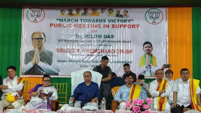 হাইলাকান্দিত বিজেপিৰ শক্তি প্ৰদৰ্শন: মণিপুৰৰ মুখ্যমন্ত্ৰীৰ উপস্থিতিত মিলন দাসৰ সমৰ্থনত বিশাল জনসভা