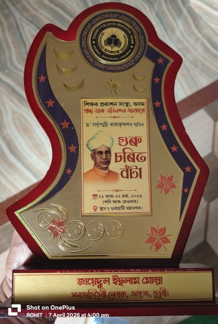 ধুবুৰী- যোৱা ২২ আৰু ২৩ মাৰ্চত দুদিনীয়া কাৰ্যসূচীৰে মহানগৰীৰ মাছখোৱা সাংস্কৃতিক প্রকল্পত অনুষ্ঠিত শিক্ষক প্রকাশন সংস্থা, অসমৰ গ্ৰন্থ উন্মোচন তথা বঁটা প্রদান অনুষ্ঠানত উক্ত সংস্থাই হামিদাবাদ উচ্চতৰ মাধ্যমিক বিদ্যালয়ৰ অধ্যক্ষ তথা কবি, লেখক জায়েদুল ইছলাম মোল্লা মহোদয়লৈ গুৰু চৰিত বঁটা প্ৰদান কৰে। তেখেত শিক্ষকতাৰ উপৰিও বিভিন্ন সামাজিক অনুষ্ঠান প্ৰতিষ্ঠানৰ লগত জড়িত হৈ আছে । গীত-মাত-নৃত্য, কথা-কবিতাৰে ২২ আৰু ২৩ মাৰ্চত দুদিনীয়া কাৰ্যসূচীৰে মহানগৰীৰ মাছখোৱা সাংস্কৃতিক প্রকল্পত অনুষ্ঠিত শিক্ষক প্রকাশন সংস্থা, অসমৰ গ্ৰন্থ উন্মোচন তথা বঁটা প্রদান অনুষ্ঠানৰ সামৰণি পৰে।