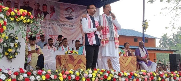 ৰামদিয়াত বিজেপি মিত্ৰজোটৰ অগপৰ প্ৰাৰ্থী প্ৰকাশ চন্দ্ৰ দাসৰ হৈ নিৰ্বাচনী প্ৰচাৰ চলাই কেবিনেট মন্ত্ৰী জয়ন্তমল্ল বৰুৱাই– হাটী মানে পদুম, পদুম মানেই হাটী–জয়ন্তমল্ল বৰুৱা